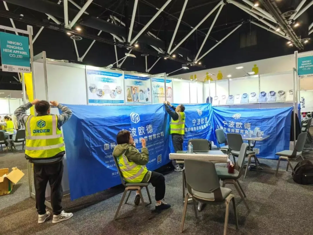 展会现场,以“东方海滨 时尚之都:甬通全球”为主题的广告牌横跨在宁波展区通道上,工作人员向到场的采购商派发宁波企业展商名录。宁波参展企业也在现场向澳大利亚及周边地区的海外采购商们推介品质化、时尚化、科技化的宁波纺织产品,组团展示了宁波时尚产业的实力与创新。